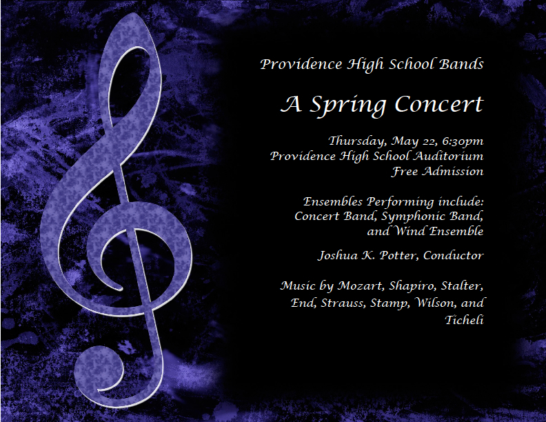 Our Wind Ensemble has been invited to perform at the NC Music Educators Conference in November. This prestigious performance opportunity will be just the 2nd time in the 25 year history of Providence High School that a band has been asked to performed. The first occurred in 2003. Our ensemble is one of just three high schools in the state of North Carolina to receive the invitation for this coming year.